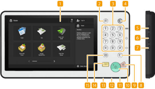 Press this key to log in when personal authentication is necessary. After you finish using the machine, press this key again to log out.