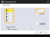 1 | Select the paper drawer in which the undetected standard size paper is loaded, and press <Unrecognized Standard Size>. |