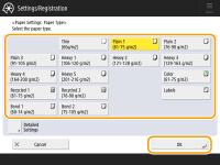 If the paper type of the paper that you have loaded is not listed on the detailed setting screen, you can register it in the paper type list.