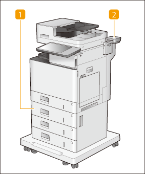 Per informazioni sulla combinazione di opzioni che si possono installare sulla macchina, contattare il rivenditore locale autorizzato Canon. Alcune impostazioni potrebbero non essere visualizzate in base alla configurazione delle attrezzature opzionali installate sulla macchina. |