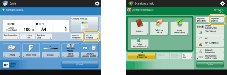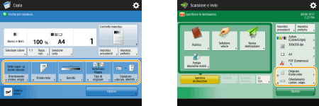 È possibile modificare i pulsanti di impostazione che vengono visualizzati nelle schermate Funzioni di base (per copia, fax e scansione). È inoltre possibile visualizzare una schermata Funzioni di base diversa, personalizzata per ogni utente che ha effettuato l'accesso.