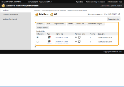 Si può fare clic su [Stampa elenco] per stampare un elenco dei file nella Mailbox.