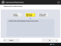 Se <Metodo specifica cartella personale> è impostato su <Registrazione per ogni utente>, registrare una delle seguenti come cartella personale per ciascun utente. Le impostazioni registrate sono le stesse e viene registrata la stessa cartella personale, indipendentemente da dove è configurata l'impostazione.