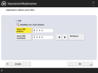 L'impostazione dell'indirizzo di server DNS e le impostazioni del proxy per la linea secondaria possono essere utilizzate solo per la comunicazione di dati di sistema specifici, come l'utilizzo della linea secondaria per accedere a un server di distribuzione firmware. Non possono essere utilizzate per una connessione internet regolare. Quando si utilizza un server DNS o un server proxy per la linea secondaria per applicazioni diverse dalla comunicazione di dati di sistema, registrare gli indirizzi e i numeri di porta da utilizzare con la linea secondaria nelle impostazioni della linea principale. |