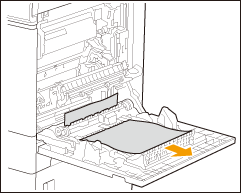 Contattare il rivenditore autorizzato Canon locale nei seguenti casi.Non è possibile completare la procedura perché la carta è incastrata attorno al gruppo di fissaggio e non può essere rimossa. Si può vedere la carta inceppata all'interno del gruppo di fissaggio, ma non può essere rimossa. |