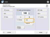 Introduzca el número de copias utilizando las teclas numéricas en la pantalla Funciones básicas de copia. Pantalla de funciones básicas de copia