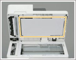 Pase un paño a la parte trasera del alimentador y del cristal de copia.