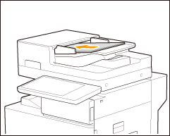 Retire los originales escaneados de la bandeja de salida de originales para evitar atascos de papel. Para evitar que los originales queden en la bandeja de salida de originales, los indicadores de salida de originales se encienden cuando salen los originales y parpadean hasta que se han retirado todos los originales.