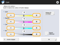![]() | Ajustez la densité de jaune, magenta, cyan et noir séparément. |