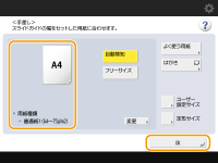 奥まで差し込むと、用紙サイズと種類を設定する画面が表示されます。