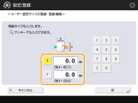 <X>辺と<Y>辺の長さを設定します。<X>または<Y>を押し、テンキーでそれぞれの辺の長さを入力します。