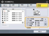 (状況確認)を押して表示される状況確認画面で、トナーの残量などを調べることができます。