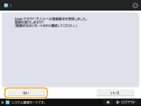 モバイル機器やGoogle Chromeから登録するモバイル機器やGoogle Chromeから本機を登録することもできます。登録完了前に本機のディスプレーに以下の確認画面が表示されますので、<はい>を押して登録を完了してください。 登録方法については、お使いの機器の取扱説明書やGoogle Cloud Printのホームページを参照してください。 |