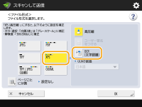 <PDF>または<XPS>を選択した場合、<高圧縮>と<OCR(文字認識)>と組み合わせて設定できます。送信画面では<PDF(高圧縮)>または<XPS(高圧縮)>と表示されます。