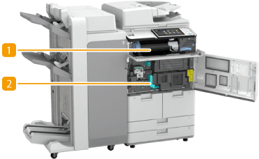 Pull the fixing transport unit out when clearing a paper jam inside the machine.