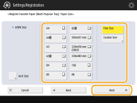 Press <Preferences>  <Paper Settings>  <Multi-Purpose Tray Defaults>.