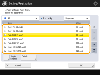 If the paper type of the paper that you have loaded is not listed on the detailed setting screen, you can register it in the paper type list.