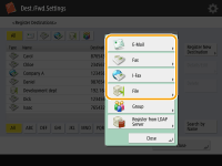 ![]() | You can register a recipient's fax number or an e-mail address that can be used when sending scanned documents in the Address Book. You can also register an I-fax destination, a file server folder location (IP address and path), and the storage (Advanced Space) of a Canon multifunction printer* in the Address Book as a destination. * Available only for the imageRUNNER ADVANCE series |