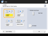 Only A4 paper can be used for <Book 2-Sided>.Place your originals on the platen glass when using <Book 2-Sided>. |