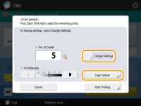 Press <Change Settings> to change the settings. <Copy Sample> is displayed after the settings are changed. Copy a sample again.