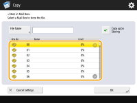 | | You can save scanned documents in the "Mail Box" of the machine temporarily and print them out later. The data is saved for a certain period of time. |