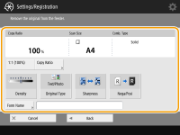 To change the name of a form image already registered, select the form image from the list in step 5 and press <Details>  <Rename Form>. To delete a form image, select the form image from the list and press <Delete>. You can register up to 100 image forms. However, this number varies depending on the capacity of the hard disk. |