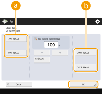 ![]() | You can enlarge or reduce by specifying magnification (%). Enlarging or Reducing by Specifying Magnification |