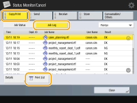 1 | Press <Copy/Print> <Job Log>. |