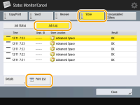 1 | Press <Store> <Job Log> <Print List>.![]() |