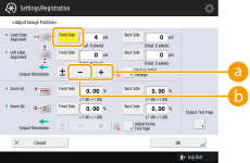 On the <Adjust Image Position> screen, press <-> or <+> for <Front Side> in <Left Edge Alignment> to input the value to shift the image.