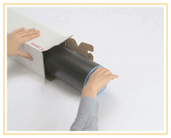 Stand the new toner cartridge in an upright position and turn the protective cap in the direction of the arrow to remove it.
