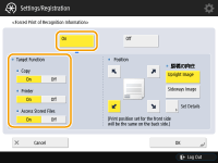 In <Target Function>, press <On> for each function that you want to apply this setting to.