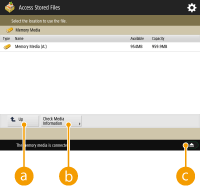 <Check Media Information>Enables you to check the serial number and the free space of the memory media.
