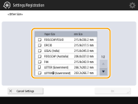 1 | Select the paper drawer in which paper is loaded and press <Other Size>. |