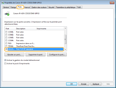 Assurez-vous que le bon port est sélectionné pour l'imprimante.