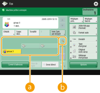 Vous pouvez enregistrer des destinataires fréquemment utilisés sur un bouton 1 touche pour simplifier les opérations. Les boutons 1 touche avec des destinataires enregistrés sont affichés sur l'afficheur tactile, ce qui vous permet de rechercher et de spécifier les destinataires à l'aide d'une seule touche. Enregistrement d'un destinataire sur un bouton 1 touche