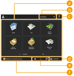 Ces boutons vous permettent d'ouvrir les écrans des fonctions de base, comme « Copie » et « Lire et Envoyer ».
