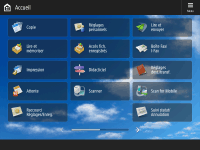 L'ordre, la taille et le nombre de boutons affichés sur l'écran <Accueil> peuvent être modifiés, de même que l'image d'arrière-plan. <Réglages de gestion d'accueil> vous permet de configure les réglages d'affichage de la ligne de temps et d'afficher/de masquer les touches de fonction.