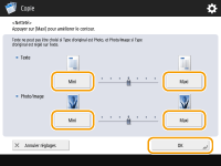 Pour réduire le moiré lors de la copie des originaux contenant des photos imprimées, comme des magazines ou des brochures, réglez la commande dans <Photo/Image> sur <Mini>.