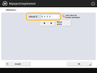 Pour vérifier les informations d'une imprimante multifonctions Canon enregistrée, sélectionnez l'appareil dans la liste de l'étape 3 et appuyez sur <Détails>. Pour supprimer une imprimante multifonctions Canon enregistrée, sélectionnez l'appareil dans la liste et appuyez sur <Supprimer> <Oui>.Nombre maximum de dispositifs pouvant être enregistrés comme dispositif distant : 7 Pour connecter directement l'appareil et l'imprimante en cascade à l'aide d'un cordon de connexion de croisement vous devez spécifier les réglages suivants pour <Réglages du pilote Ethernet>. <Réglages du pilote Ethernet> <Détection auto.>: <Oui> <Mode de communication>: <Duplex intégral> <Type Ethernet>: <100BASE-TX> |