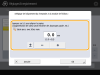 Si vous voulez ajuster la position de sortie du papier lorsque vous utilisez des agrafes, sélectionnez <Réglage alignement pour agrafage>.