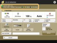 Lorsque vous appuyez sur <Lire et mémoriser> dans l’écran <Accueil>, puis sur <Boîte aux lettres>, <Espace avancé>, <Réseau> ou <Support mémoire> pour numériser des originaux, l'écran de réglage suivant s'affiche.