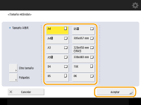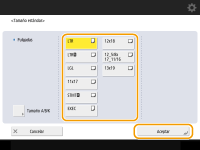 Incluso cuando el papel esté cargado correctamente, es posible que algunos tamaños estándar pequeños no se detecten correctamente. Si este fuera el caso, pulse <Tamaño estándar> y seleccione el tamaño del papel. Tamaños de papel automáticamente detectables