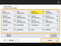 Si no se muestra el tipo de papel cargado, pulse <Opciones detallad.> para seleccionarlo de una lista.