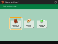 Si le serveur LDAP est déjà enregistré dans l'appareil (Enregistrement du serveur LDAP), vous pouvez rechercher des destinataires et les enregistrer dans le carnet d'adresses. Appuyez sur <Réglages dest./transf.> <Mémoriser les destinations> <Mémor. nouv. dest.> <Mémoriser depuis serveur LDAP> et recherchez des destinataires avec <Rech. par conditions> ou <Rechercher par nom>.Lorsque le nom d'utilisateur et le mot de passe sont corrects mais que les résultats de recherche sont vides, vérifiez le réglage de l'heure sur le serveur LDAP et l'appareil. Si le réglage de l'heure entre le serveur LDAP et l'appareil diffère de cinq minutes ou plus, une recherche ne peut pas être effectuée. Si plusieurs destinataires sont trouvés suite à une recherche, vous pouvez en enregistrer jusqu'à 256 en une seule fois. Les informations qu'il est possible d'obtenir via un serveur LDAP comportent uniquement des noms et des numéros de fax/adresses. Enregistrez les autres informations à partir de <Détails/Modification> comme il convient. Vous ne pouvez pas rechercher des destinations sur un serveur LDAP depuis le panneau de commande et l'interface utilisateur distante simultanément. Lorsque vous recherchez des destinations sur un serveur LDAP à partir du panneau de commande de l'appareil, vous pouvez spécifier quatre conditions de recherche. Par ailleurs, lorsque vous recherchez des destinations sur un serveur LDAP depuis l'interface utilisateur distante, vous pouvez uniquement spécifier une condition de recherche. Vous pouvez avoir besoin de saisir le nom d'utilisateur et le mot de passe. Saisissez le nom d'utilisateur et le mot de passe de la machine enregistrée dans le serveur LDAP. Si les informations d'authentification ne sont pas utilisées, recherchez avec les champs de nom d'utilisateur et de mot de passe restés vides dans l'interface utilisateur distante. Spécification/enregistrement de destinataires à partir de l'historique des envoisVous pouvez spécifier et enregistrer des destinataires dans le carnet d'adresses à partir de l'historique des envois dans l'écran <Status Monitor>. Vous économisez ainsi le travail de saisie directe de l'adresse et évitez aussi l'envoi à un destinataire incorrect si l'adresse saisie est erronée. Pour spécifier une destinataire : <Status Monitor> <Envoi> <Journal des tâches> sélectionnez le destinataire de l'envoi <Déf. comme dest. envoi> <OK>Pour enregistrer un destinataire : <Status Monitor> <Envoi> <Journal des tâches> enregistrez le destinataire depuis l'écran d'enregistrement pour chaque type de destinataire. |