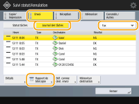 2 | Sélectionnez <Envoi> ou <Réception> dans la liste et appuyez sur <Rapport de gestion des communications>. ![]() |