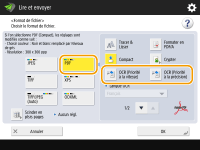 Les originaux très longs (432 mm (25 1/4") ou plus) ne peuvent pas être utilisés avec <OCR (rech. texte possible)>. |