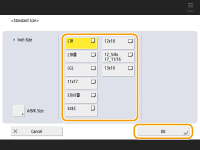Mesmo quando o papel é carregado corretamente, alguns padrões de tamanho podem não ser detectados corretamente. Nesse caso, pressione <Standard Size> e selecione o tamanho do papel. Tamanhos de papel automaticamente detectáveis