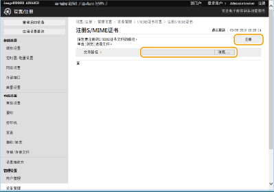 单击[浏览...],指定要注册的文件(S/MIME证书),然后单击[注册]。