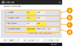 按<功能设置>  <存储/存取文件>  <高级存储箱设置>  <统一的高级存储箱设置>  <下一步>。